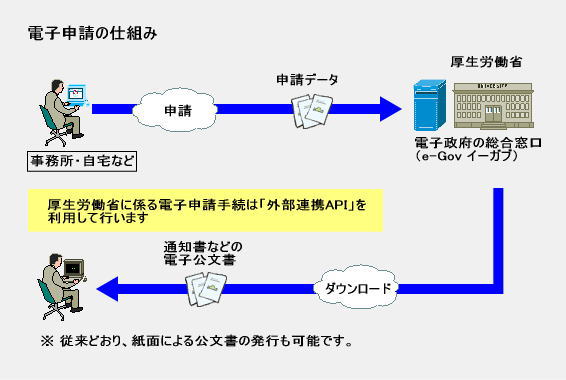 - 今までフロッピーディスクによる申請を利用していた企業等は、その際に利用していた届書作成プログラムをそのまま利用することができ、その届書作成プログラムで作成した届書等を電子申請することが可能です。
